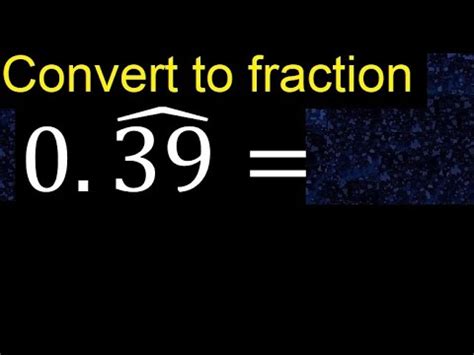 0.39 Repeating As A Fraction. As we have 2 numbers after the decimal point, we multiply both numerator and denominator by 100. Write down the number as a fraction of one: