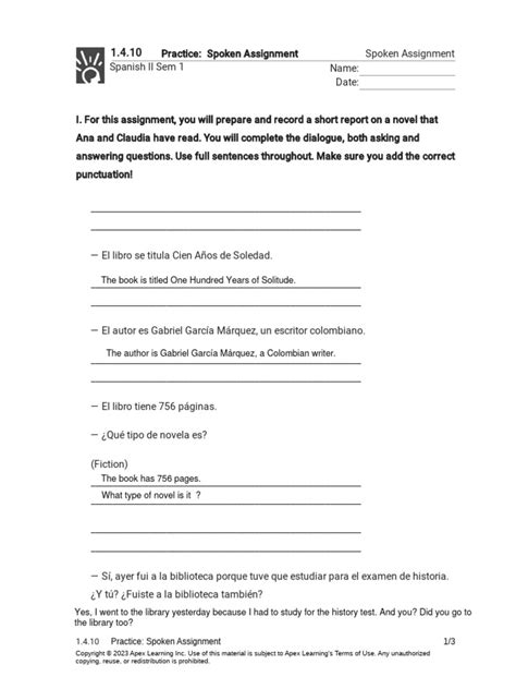1.4 10 Practice Spoken Assignment. 60 points study guide study guide study guide study guide. Spoken assignment spoken assignment spanish ii sem 1 name: