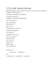 2.12 Lab Name Format. Name format many documents use a specific format for a person's name. Firstname lastname the output is: