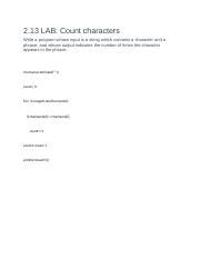 [Solved] 2.13 LAB Count characters Write a program whose input is a