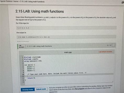 Mputer science l home >. Mputer science l home >. Computer science questions and answers. These functions cannot be used with complex numbers; Web this module provides access to the mathematical functions defined by the c standard. Run your program as often as you’d. Using math functions 0/10 activity main.py load default template… 1 import math 2 type your code here. Web engineering computer science 2.15 lab: Web need help answering this lab 2.15 lab: Web solved mputer science l home > 2.15: Statistical functions apply a mathematical process to a group of.