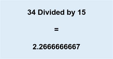 34 Divided By 15. Enter the expression you want to evaluate. Web 22 divided by 15 = 1.466666 calculating 6 decimal places 22 divided by 15 = 1.466 calculating to 3 decimal places note that this is not the same as rounding to a specific number of decimal places.