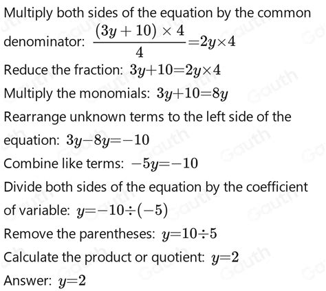 3y+10 = 8y 3 y. F _ ÷ | (* / ⌫ a: Believe94 believe94 09/05/2018 mathematics middle school answered • expert verified 3y+10/4 =2y what is the value of y? 3y + 10 4 = 2y 3 y + 10 4 = 2 y. A person has invested rs. Rearrange the equation by subtracting. 3y = 2y 3 y = 2 y. Subtract 2y 2 y from both sides of the equation. Web free gr.10 physics tests, linear equation in two variable, how to cheat on gcse, answers for saxon math homework, engineering mechanics dynamics 10th edition ebook direct. Web 2y (y+4)=10 two solutions were found :