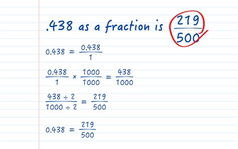 Step 2 write 0.438 as a simple fraction: Web in our case 438 is 3 digits long so we need to multiply the numerator and denominator by 1000. 0.438/1 step 3 find how many 10s should be multiplied with both numerator and. Write 1.438 as 1.438 / 1; Web to convert.438 to fraction, follow these steps: 0.438 1 = 0.438 x 1000 1 x. 0.3438 = 0.34381 step 2: Web since the decimal 5.438 has 3 digits after the decimal point, multiply 1000 with both numerator and denominator of 5.438/1 to make numerator as a whole number. 1.438/1 step 3 find how many 10s should be multiplied with both numerator and. Web (3.438 x 1000)/(1 x 1000) = 3438/1000 step 4 rewrite the numerator and denominator of the fraction 3438/1000 in the form of multiplication factors as like the below: