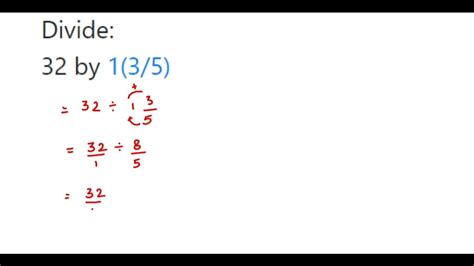 Add a comment add your answer: Division calculator with steps calculator division tables generator references: 6.4 the answer to 32 divided by 5 can also be written as a mixed fraction as follows: Write the remainder after subtracting the bottom number from the top number. (multiply any number by 1 and you do not change its value). Divide 2 numbers and find the quotient. Bring down the next digit after each step as shown below: Add a comment add your answer: Web 5 divided by 32 = 0. How to calculate 32 divided by 6 using long division 25(3 5) 2 5 ( 3 5) cancel the common factor of 5 5.