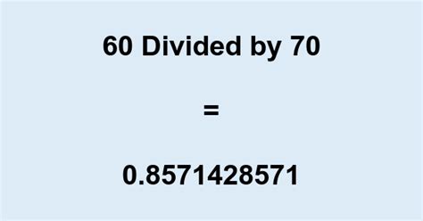 60 Divided By 70. The dividend and divisor of 60 divided by 70. You could also express 70/60 as a mixed fraction: