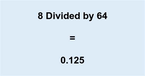 8 Divided By 64. 1 of those 8 slices would constitute the numerator of a fraction, while the total of 8 slices that comprises the whole pie would be the denominator. Web if you enter 64 divided by 8 into a calculator, you will get: