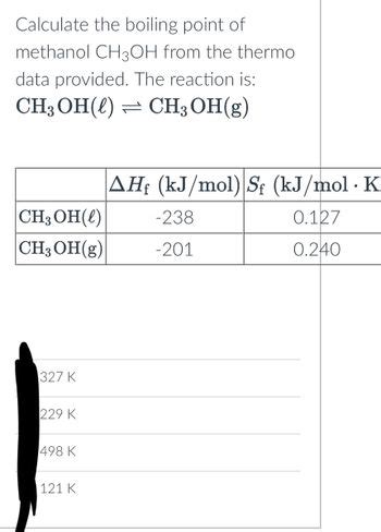 Boiling Point Of Ch3Oh. For example, all the following molecules contain the same number of electrons, and the first two have similar chain lengths. Web ch3oh has a higher boiling point due to hydrogen bonding why does cu have a greater boiling point than methanol ch3oh?