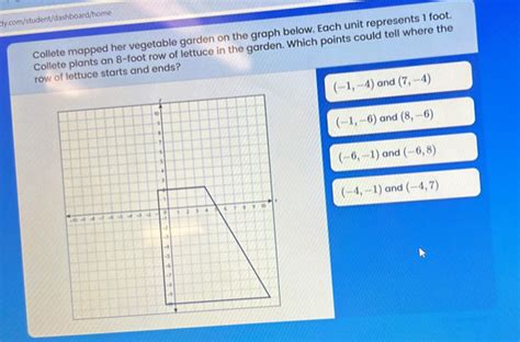 Collete mapped her vegetable garden on the graph below. Each unit