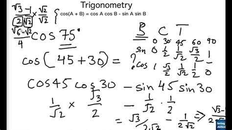 You'll get a detailed solution from a subject matter expert that helps you learn core concepts. Step 4 the exact value of is. Web split 75 75 into two angles where the values of the six trigonometric functions are known. Either of these three ways is. Web split 75 75 into two angles where the values of the six trigonometric functions are known. Sin(30)cos(45)+cos(30)sin(45) sin ( 30) cos ( 45) + cos ( 30) sin ( 45) the exact value of sin(30) sin ( 30) is 1 2 1 2. This problem has been solved! Web convert from degrees to radians cos (75) cos (75) cos ( 75) to convert degrees to radians, multiply by π 180° π 180 °, since a full circle is 360° 360 ° or 2π 2 π radians. Web what is the value of cos 75°? Apply the sum of angles identity cos(x+y) = cos(x)cos(y)−sin(x)sin(y) cos ( x + y) = cos (. Apply the sum of angles identity cos(x+y) = cos(x)cos(y)−sin(x)sin(y) cos ( x + y) = cos (.