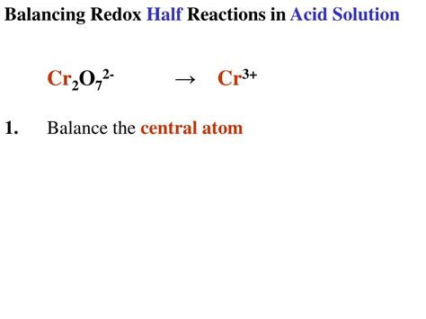 Cr2O72- Cr3+ Half Equation. Balance the chemical equation for the following redox reaction under acidic aqueous conditions. Web reduction half equation: