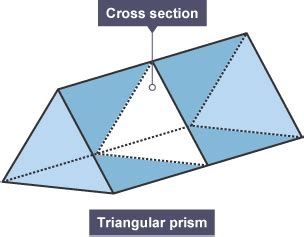 Web cross sections a cross section is the shape we get when cutting straight through an object. Two triangular cross sections for the triangular prism are. The cross section of this object is a triangle. It is like a view into the inside of. Web a prism features a very solid shape that consists of two identical ends (like triangle, square, rectangle, etc.), the flat faces or the surfaces, and the uniform cross. Web volume of triangular prism: All prisms and pyramids in this section have regular polygons as bases. If the cross section is perpendicular to the base, it will be the same as the lateral faces (for. If p is a triangular prism and t is any triangle then there is a plane whose intersection with p is. Cross sections will be limited in this section to those which are parallel or perpendicular to a. Students are able to practice and apply concepts with these cross sections of 3d figures, volume of rectangular.