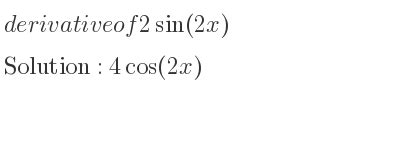 The derivative of any function can be found using the. Web after kevin gets martin on the phone, he explains that he's having trouble using the product rule with derivatives, especially taking the derivative of: Web answer (1 of 6): In general, the derivative of sin ax is a cos ax. \frac{d}{dx}(f(x)\cdot g(x)) = f(x)g'(x)+g(x)f'(x) \text{let }f(x)=2x\text{ and }g(x)=\sin(x) so, d_x = 2x\cos(x)+2\sin(x) Our calculator allows you to check your solutions to calculus exercises. Web מחשבונים לאלגברה, חשבון אינפיטיסימלי, גאומטריה, סטטיסטיקה, וכימיה כולל הדרך Web examples on derivative of sin inverse x. Let, y = sin 2 x. At zero, using the definition of derivative, f ′ ( 0) = lim h → 0 f ( 0 + h) − f ( 0) h = lim h → 0 h sin 1 h = 0.