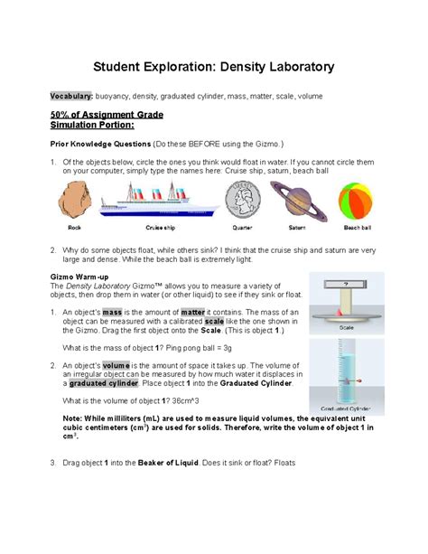 Density And Buoyancy Worksheet Chart Sheet Gallery