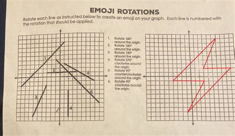 Emoji Rotations Answer Key. Rigid transformations (mixture of translations, reflections, & rotations) and 3 exercises for a mixture of all types of transformations. Rotate 180 ° around the origin.