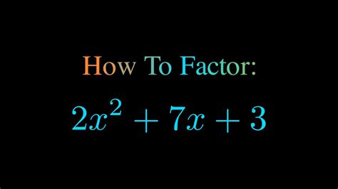 Get homework help now solve by factoring. Web more than just an online factoring calculator. Web how do you factor: 2x2 + 7x + 3 ? 2 x 2 + 7 x + 3 solution factorization the given equation is, 2 x 2 + 7 x + 3 = 2 x 2 + x + 6 x + 3 = x ( 2 x + 1) + 3 ( 2 x + 1) = ( 2 x + 1) ( x + 3) hence, the result of the. For a polynomial of the form ax2 +bx+ c a x 2 + b x + c, rewrite the middle term as a sum of two terms whose product is a⋅c = 2⋅3 = 6 a ⋅ c = 2 ⋅ 3 = 6 and. To factor a trinomial x^2+bx+c find two. Step 1 :equation at the end of step 1 : In this article, we have looked at how to factorise the expression 2x2 + 7x3. Step 3 :pulling out like terms :