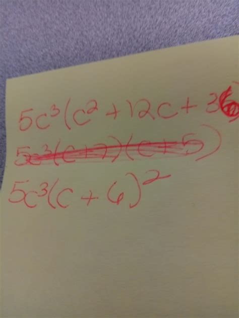 Factor completely 5c5 + 60c4 + 180c3. 5c3(c + 6)(c − 6) 5c3(c2 + 12c