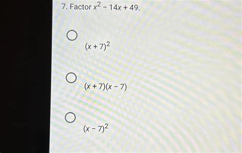 We do this by adding 49 to both sides of the. Web to factor a binomial, write it as the sum or difference of two squares or as the difference of two cubes. Find factors of 49 which add (+) to give 14. Web conversions factor x^2+14x+49 pre algebra algebra pre calculus calculus functions linear algebra trigonometry statistics physics chemistry finance economics. It also multiplies, divides and finds the greatest. Trinomial squares can be factored by finding the square roots of the. X 2+14x+49=x 2+7x+7x+49, (split middle term so that resultant is same)=(x 2+7x)+(7x+49), (group pair of terms)=x(x+7)+7(x+7), (factor each binomials)=(x+7)(x+7),. Web more than just an online factoring calculator. To factor a trinomial x^2+bx+c find two. Type in any equation to get the solution, steps. Wolfram|alpha is a great tool for factoring, expanding or simplifying polynomials.