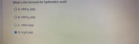 Formula For Hydronitric Acid. Lioh is a.with the name. What is the formula for hydronitric acid?