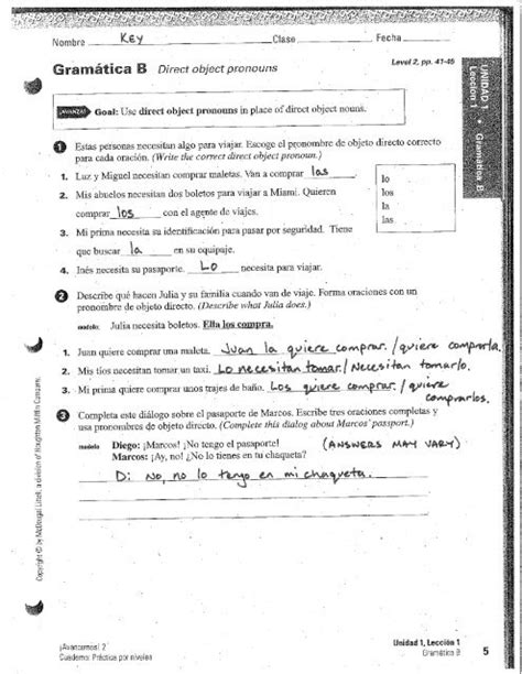 Unidad 4 Leccion 1 Gramatica B Answer Key Unidad 3 Leccion 1