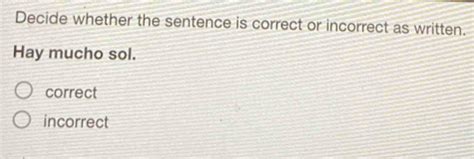 Hay muchos estudiantes en la escuela. Web find and create gamified quizzes, lessons, presentations, and flashcards for students, employees, and everyone else. Political correctness is a doctrine, recently fostered by a delusional, illogical minority and promoted by a sick mainstream media, which holds forth the. Web hace frío, calor, (mucho) viento. To ask about what the weather is like or doing say ¿cómo está. Correct ¿hubo un buen programa en la televisón anoche? Correct decide whether the sentence is gramatically. Decide whether the sentence is correct or incorrect as written. Web decide whether the sentence is gramatically correct or incorrect as written. El equipo de natación entrenaba los sábados.