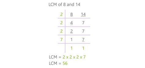 Lcm Of 8 14. Web lcm of 7, 8, 14, and 21 = 2 × 2 × 2 × 3 × 7 [incomplete pair(s): Web least common multiple of 8 and 14 = 56.