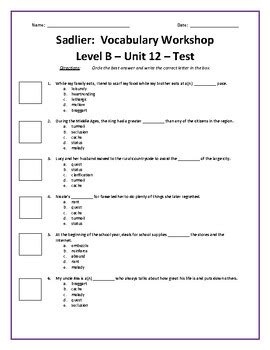 Level B Unit 12. Web this is a test over the unit 12 words for level b in sadlier: Web vocabulary workshop level b unit 12 answers sadlier vocabulary workshop enriched edition / common core edition level b unit 12 answers choosing.