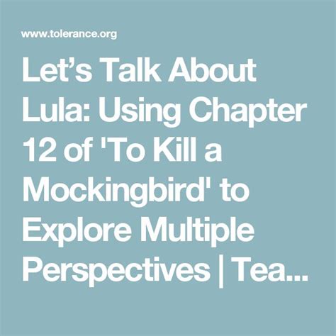 Lula To Kill A Mockingbird. Lula appears only once in the novel, but she makes it count. Scout describes what lula looks.