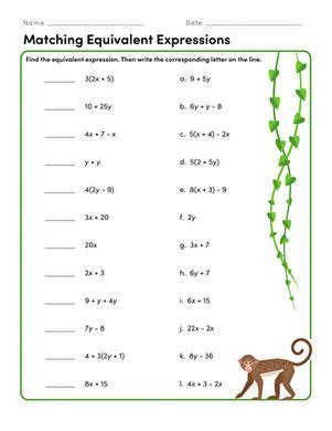 Web a matching equivalent expressionsname:answer key math www.commoncoresheets.com8 match each expression on the left to the equivalent. Each situation should match with 2 expressions, 1 of which is. Web matching equivalent expressionsname:answer key math www.commoncoresheets.com3 match each expression on the left to the equivalent. Matching equivalent expressions worksheets 12. To factor, you reverse the process. Web the first requires students to simplify expressions, and then match them to the simplified version. You identify the common factor in both terms (the 2), you write the 2 in front and you divide. These free equivalent expressions worksheets will help you prepare for your end of the year math exams. Web how do you match equivalent expressions? Web this is a matching activity or card game on equivalent expressions with powers.