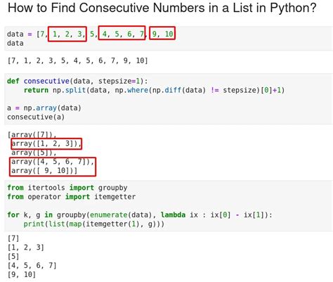 Python Consecutive Numbers In List. Web find consecutive integers in a list this is because you only check the nextnumber. >>> l = [i for i in range (10)] >>> l [0, 1, 2, 3, 4, 5, 6, 7, 8, 9] >>> l = list.