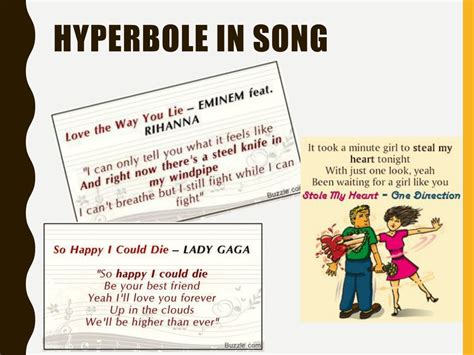 Be careful, it’s a jungle out there. Web additional songs with the word like used as a simile in a title include: Web we are young by fun has some very hyperbolic lyrics: These high heels are killing me. Web what is hyperbole, and why do writers use it? You'll see examples of hyperbole in different kinds of writing,. You’re as light as a feather. Web in rhetoric and literature, hyperbole is often used for serious, comic, or ironic effects. Web hyperbole rap song 3,547 views nov 17, 2021 songs for school 10.6k subscribers 54 dislike share hy·per·bo·le an unrealistic exaggeration the topic of this song.more. Web examples of hyperbole in popular songs. Web 5 songs that have hyperbole in them 6,418 4 learn about prezi am aranza mellet duobert fri oct 23 2015 outline 9 frames reader view 1.