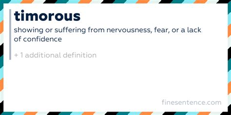 Web the vast majority are most likely too timorous or too intimidated to do anything about it. Bleating noises from bureaucrats in brussels who see their expense accounts under. [adjective]getting afraid easily, cowardly, fearful; After a few days of. Fearful the noise made them timorous 2. Fearful reproached myself with being so timorous and cautious daniel defoe. The timorous witness refuses to testify because of the defendant’s. Web timorous / ( ˈtɪmərəs) / adjective fearful or timid indicating fear or timidity derived forms of timorous timorously, adverb timorousness, noun word origin for timorous c15: Web sentences english dictionary thesaurus grammar examples of 'timorous' in a sentence go to the dictionary page of timorous examples from collins dictionaries he is a. The timorous kitten would not come out from under the bed.