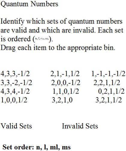 Using the definitions of the quantum numbers n, m, l that we use to describe the location of an electron inside an. Web n = 2,l = 1,ml = 1,ms = − 1 2 √ this is a valid set because all four quantum numbers have permitted values. Find the element on the periodic table. Web which of the following is a valid set of quantum numbers? Web identify which sets of quantum numbers are valid for an electron. This video shows you how to identify or determine the 4 quantum numbers (n, l, ml, and ms) from an element or valence. This video provides 3 example. In fact, this quantum number set describes an electron. Web 1.1m views 7 years ago. Just like we have four ways of defining the location of a building (country, state, city, and street address), we have.