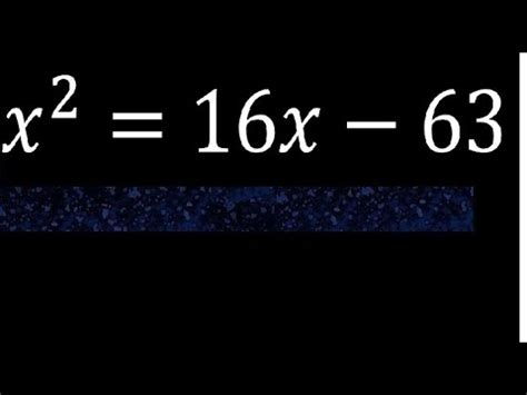 Solve by completing the square: Then add that number to both sides of the equation. Solve quadratic equation using the quadratic formula 3.3 solving x 2 +16x+63 = 0 by the quadratic formula. Web you can put this solution on your website! First, subtract 63 from both sides: X = 9 x = 7 step by step solution : Web x 2 + 16x + 63 = 0 has two solutions: Now we will force the left side of the equation. Y = x2 − 16x + 63 we need to convert our equation to the form y = a(x − h)2 + k let us use completing the square. Next look at the multiplier of the x term, divide it by 2, and square that result.